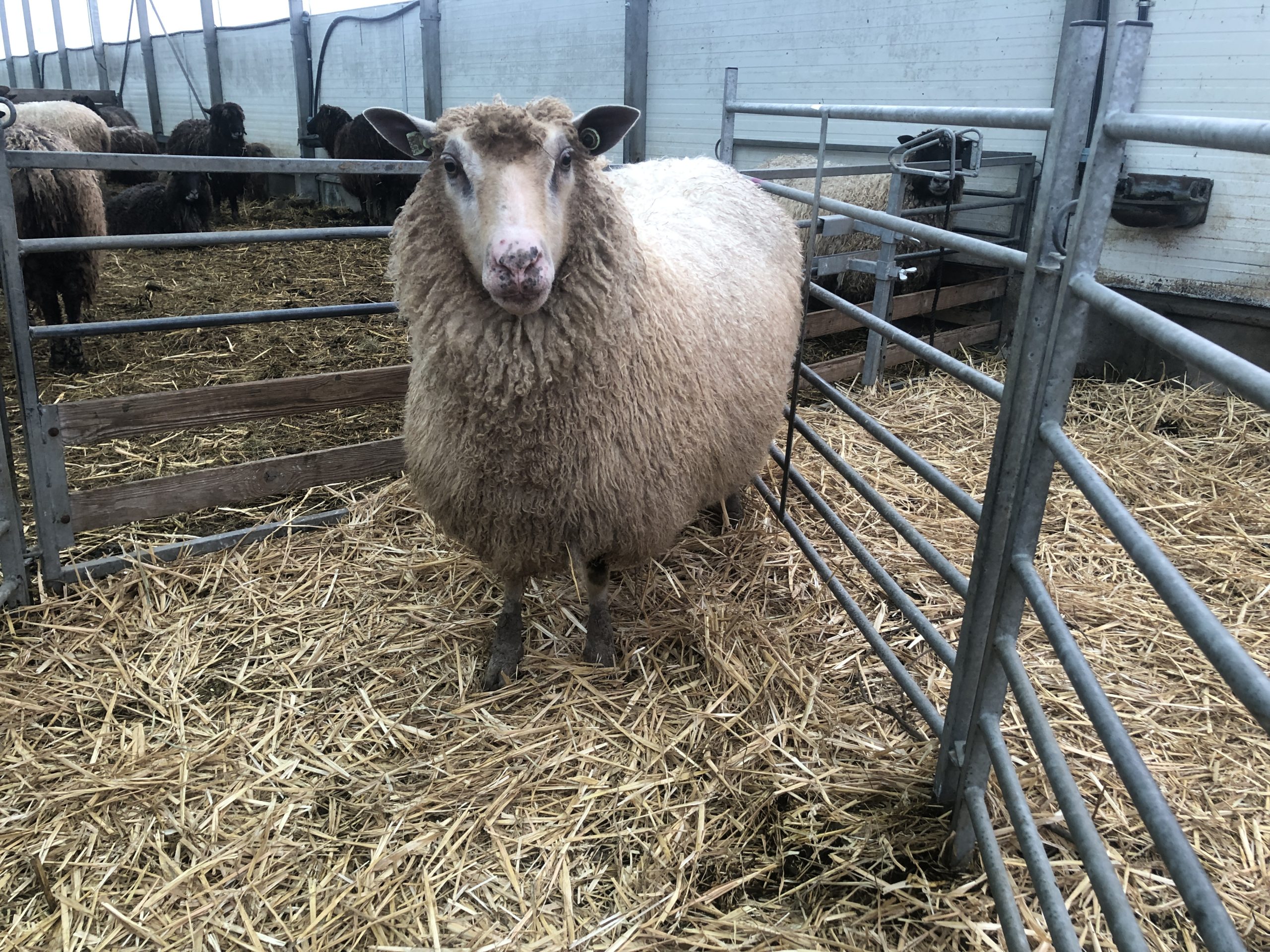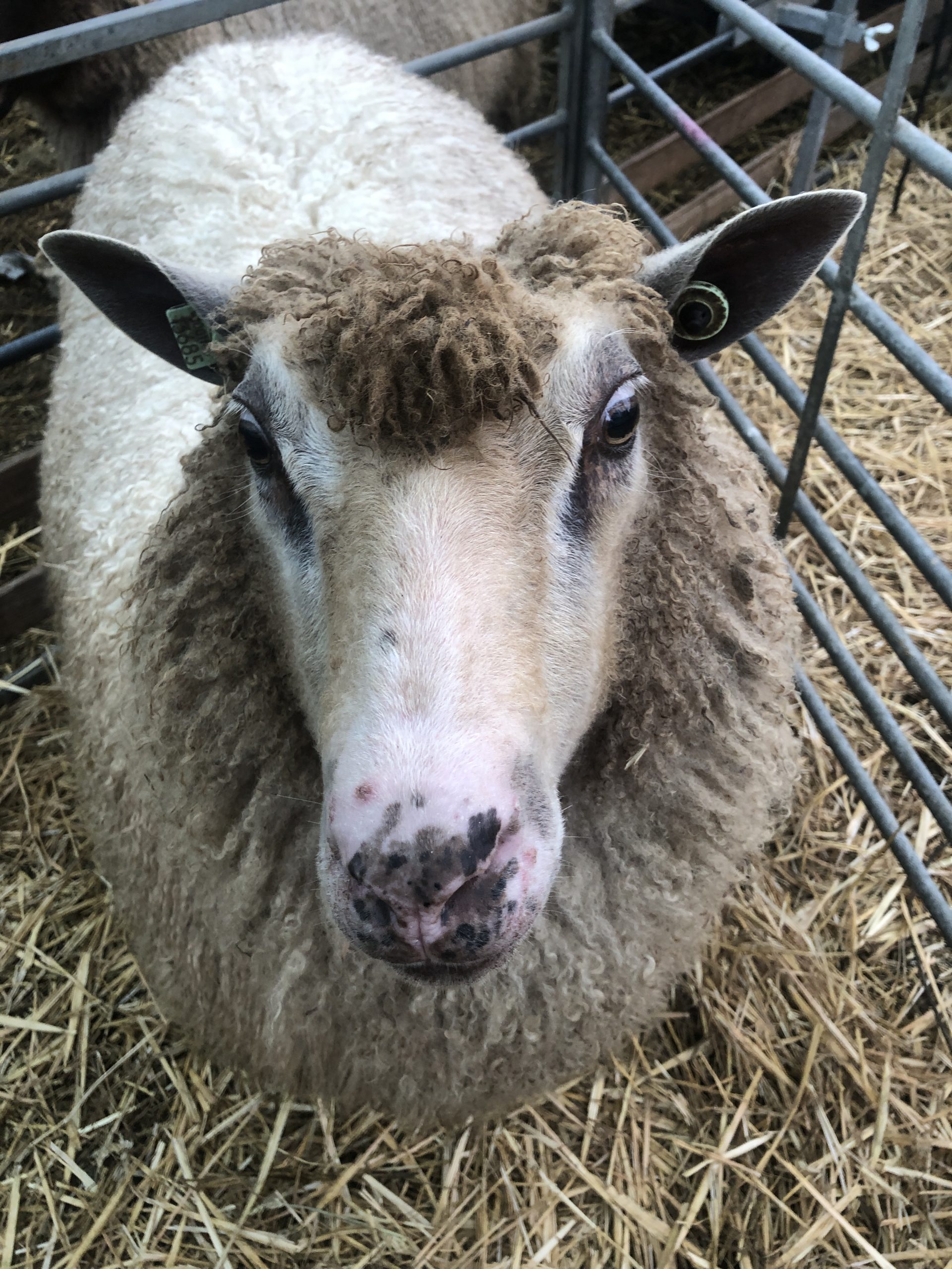 Tumtum is het produkt van Pepernoot (texelaar x rouge moeder) en Bruce (Sherino vader). Ze is net zo lief als haar moeder en is, om in het strooigoed te blijven, maar Tumtum genoemd. Haar broertje heet Taaitaai :-). Tumtum heeft een prachitge glanzende roomwitte vacht met mooie crimp.
