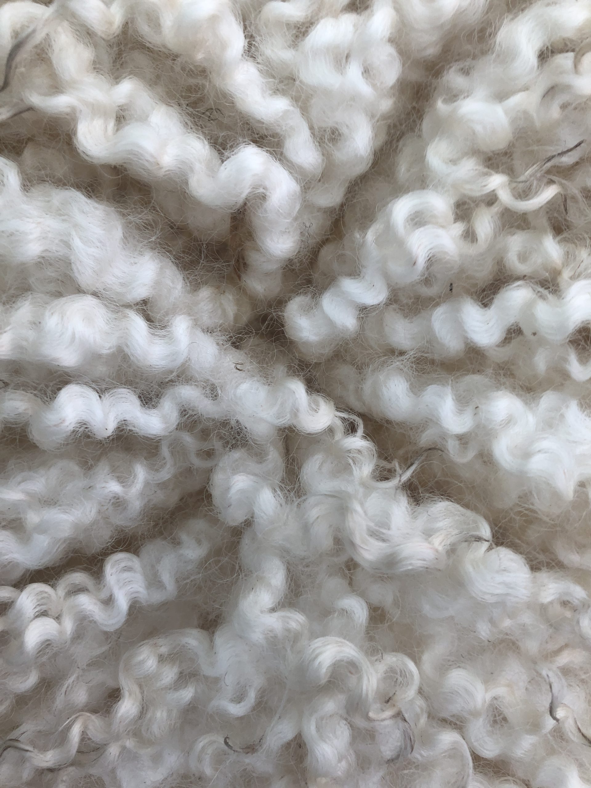 Deze warm roomwitte vacht is heel geschikt om te spinnen. Als je hem kamt krijg je schitterend glanzend kamgaren.
