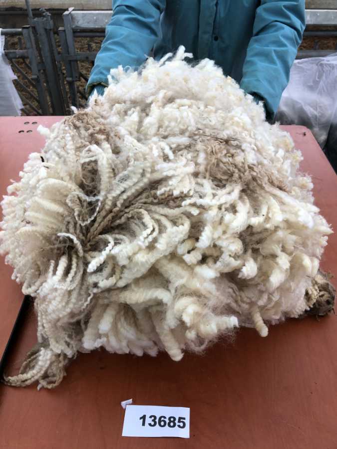 De vacht weegt 3,4 kilo en er zit een zakje bij met wat buikwol apart, die is korter en wat vuiler, maar hebben we er voor de liefhebber als bonus bij gestopt.