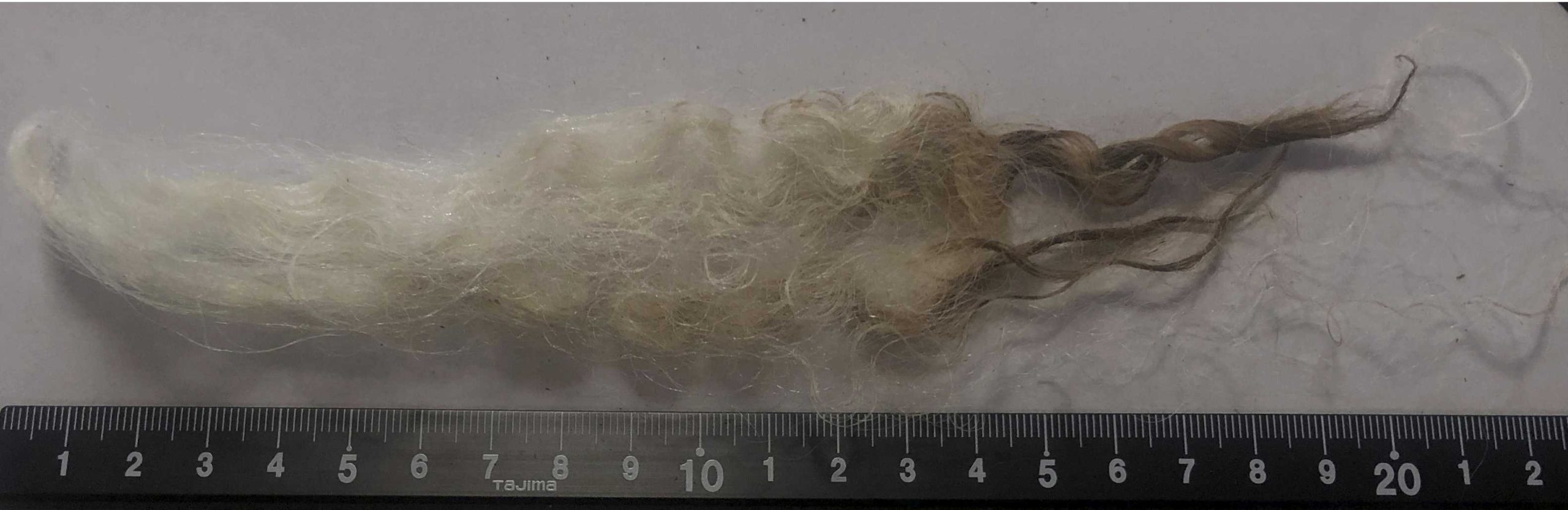 De vezellengte is zo’n 20 cm, er kunnen langere lokken tussen zitten.
