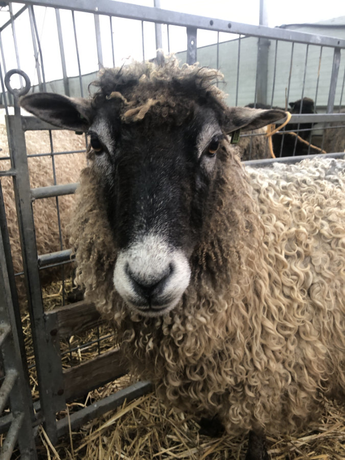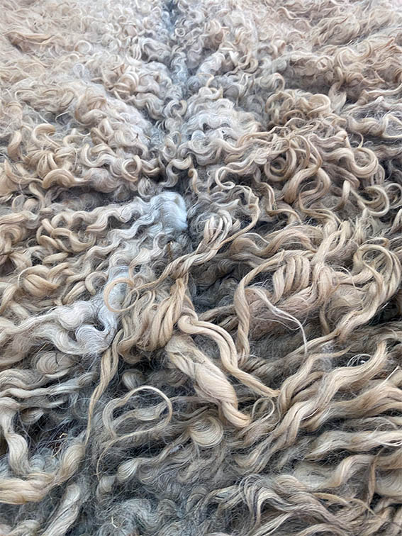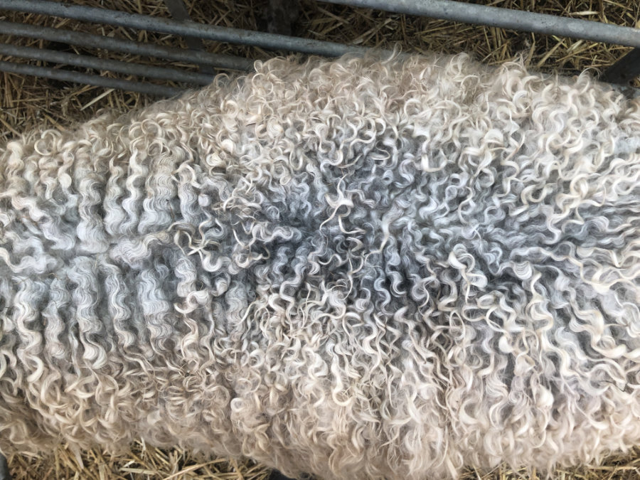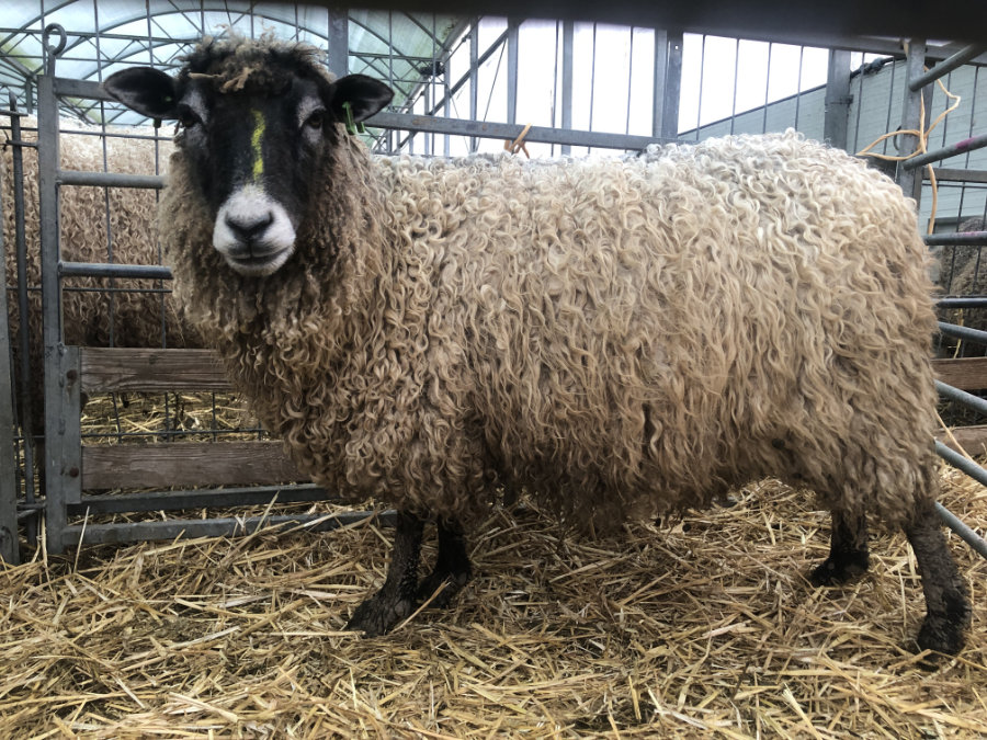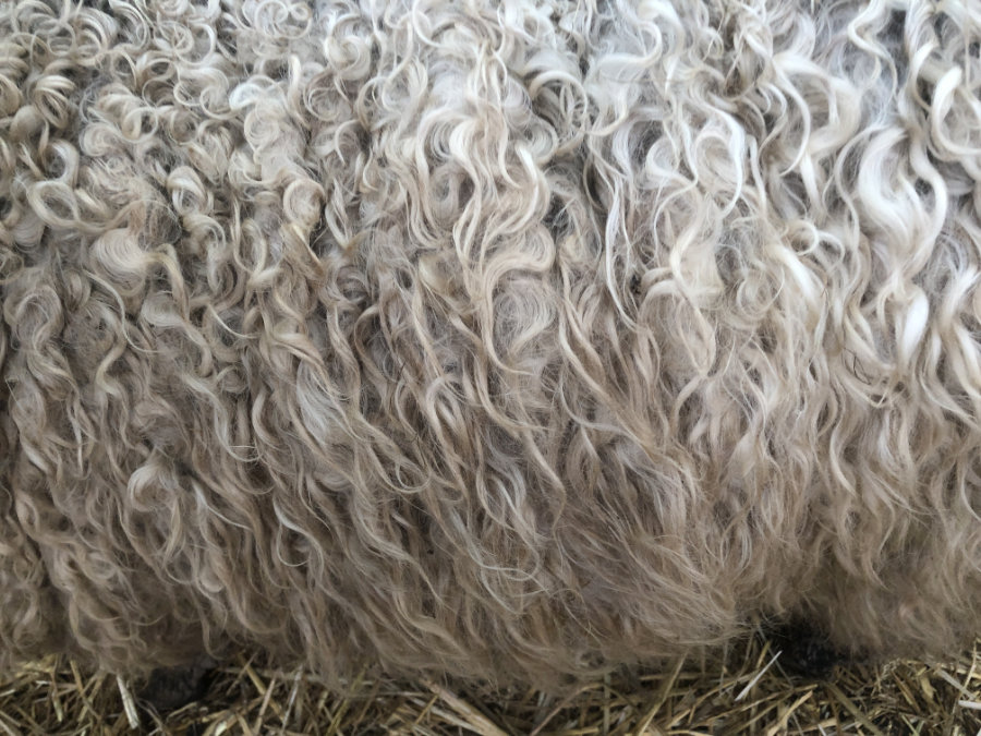 De mooie lange krullenvacht van Betty is heel geschikt om te vilten.