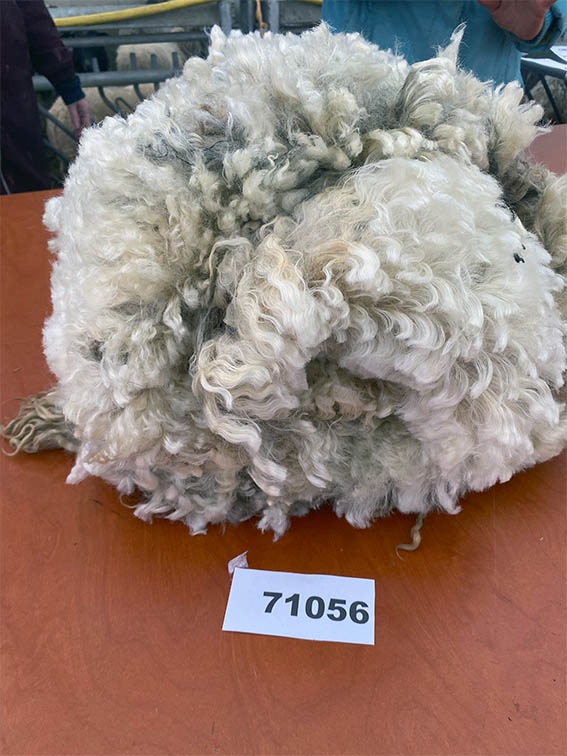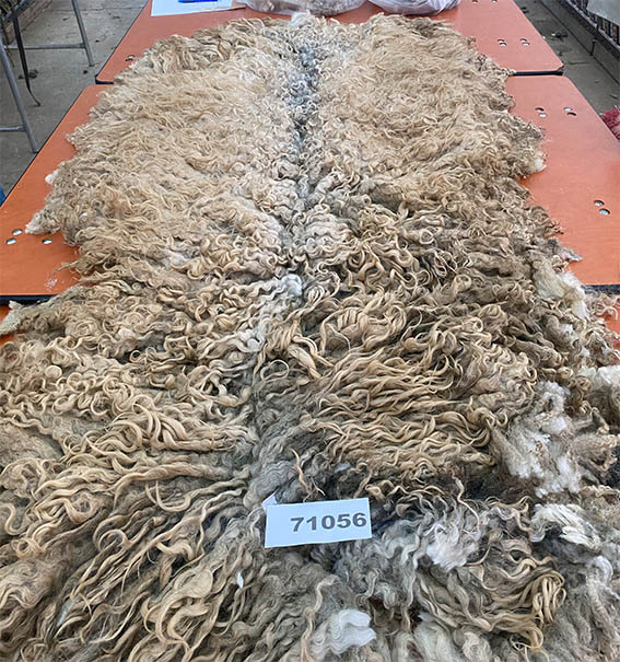 Deze vacht is niet machinaal geschoren maar geknipt. Dat betekent dat er geen “dubbelscheer” in de vacht zit (kleine korte stukjes). Na het scheren zijn evt vuile stukken verwijderd, evenals stro en hooi. De vacht is niet gewassen en is geschoond zoals je hem op de rechter foto’s ziet.