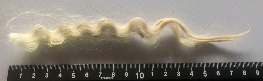 De vezellengte is zo’n 18 cm, er kunnen langere lokken tussen zitten.