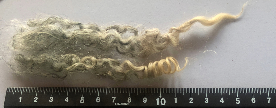 De vezellengte is zo’n 16 cm, er kunnen langere lokken tussen zitten.
