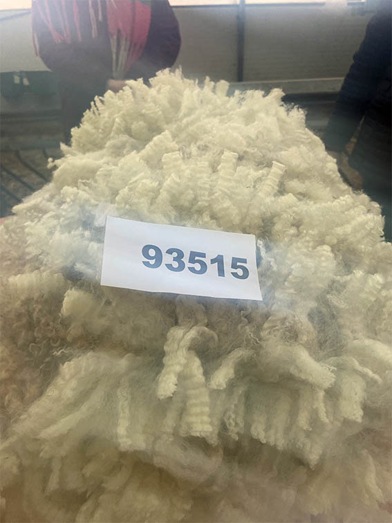 Deze vacht is niet machinaal geschoren maar geknipt. Dat betekent dat er geen “dubbelscheer” in de vacht zit (kleine korte stukjes). Na het scheren zijn evt vuile stukken verwijderd, evenals stro en hooi. De vacht is niet gewassen en is geschoond zoals je hem op de rechter foto’s ziet.