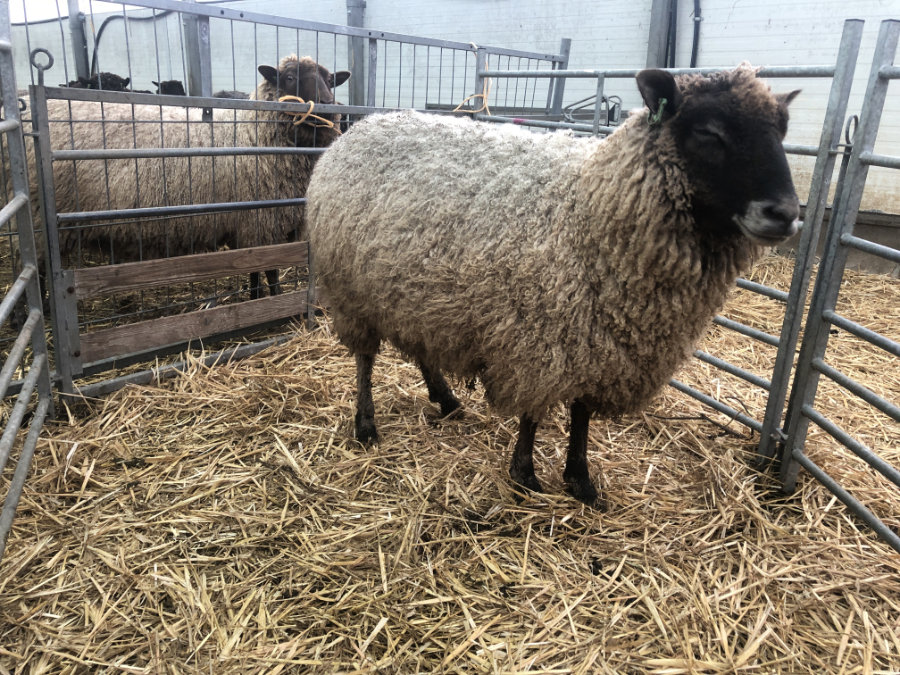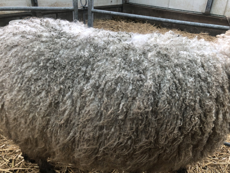Deze jonge ooi was een prachtig blauwgrijs lammetje, terwijl alle andere Sherino Longwool lammetjes zwart geboren werden. Haar wol is steeds wat lichter geworden en is nu bijna wit. De vacht is glanzend en zacht en heeft een lange fijne krul.