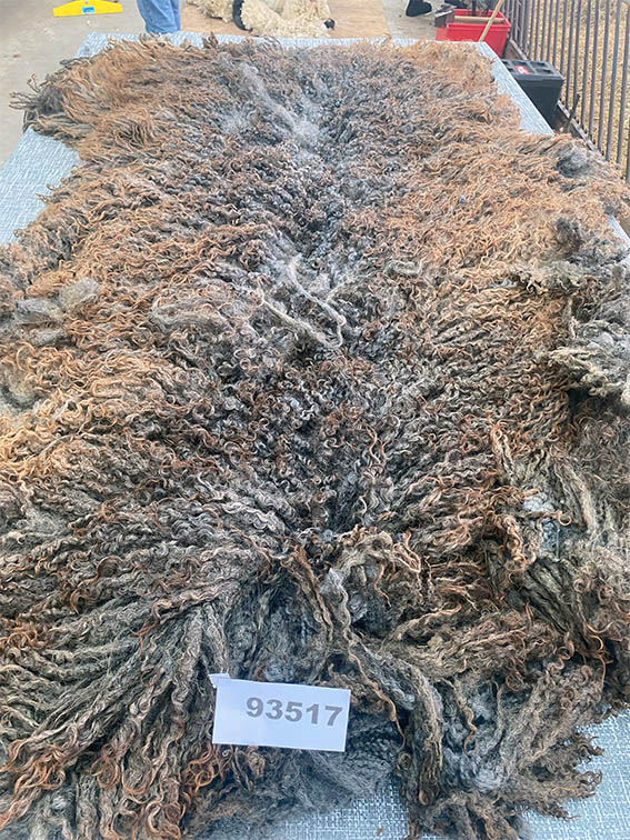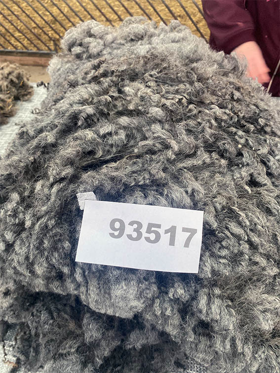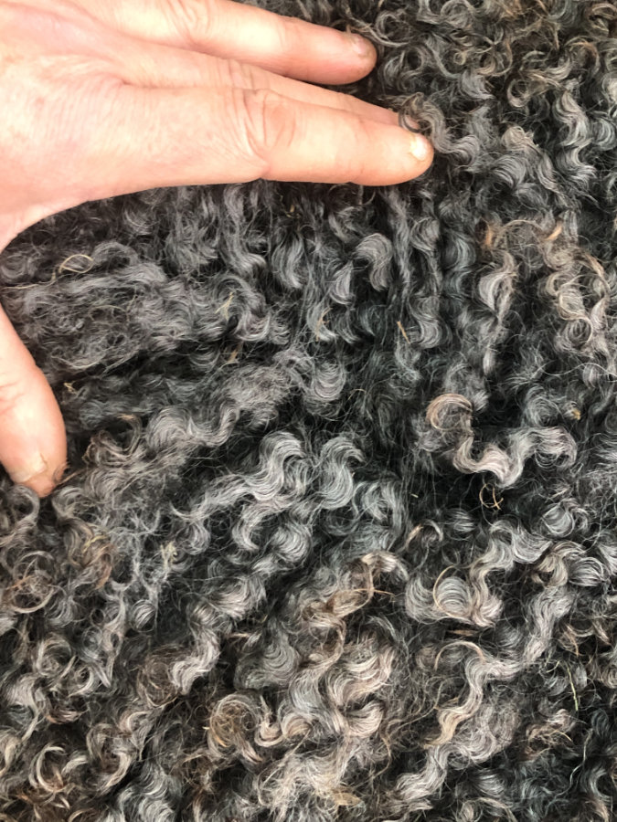 Deze blauwgrijze vacht is heel geschikt om te vilten of losse krullen te oogsten voor projecten. Je kunt hem echter ook goed spinnen.