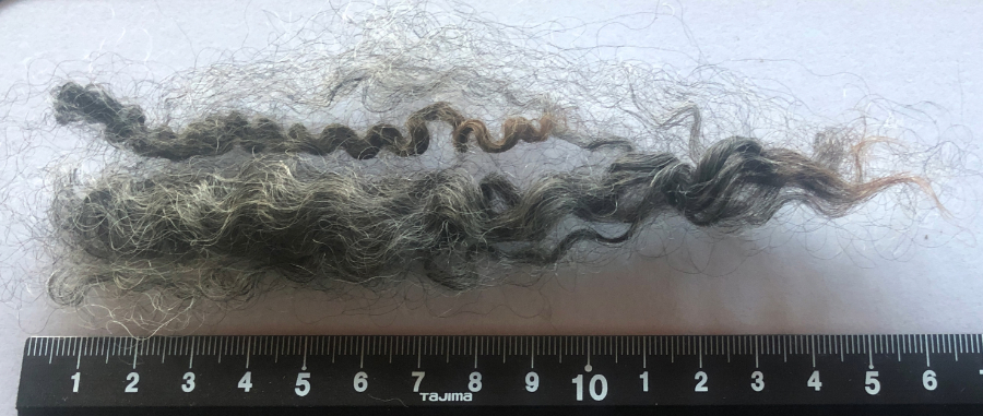 De vezellengte is zo’n 16 cm, er kunnen langere lokken tussen zitten.