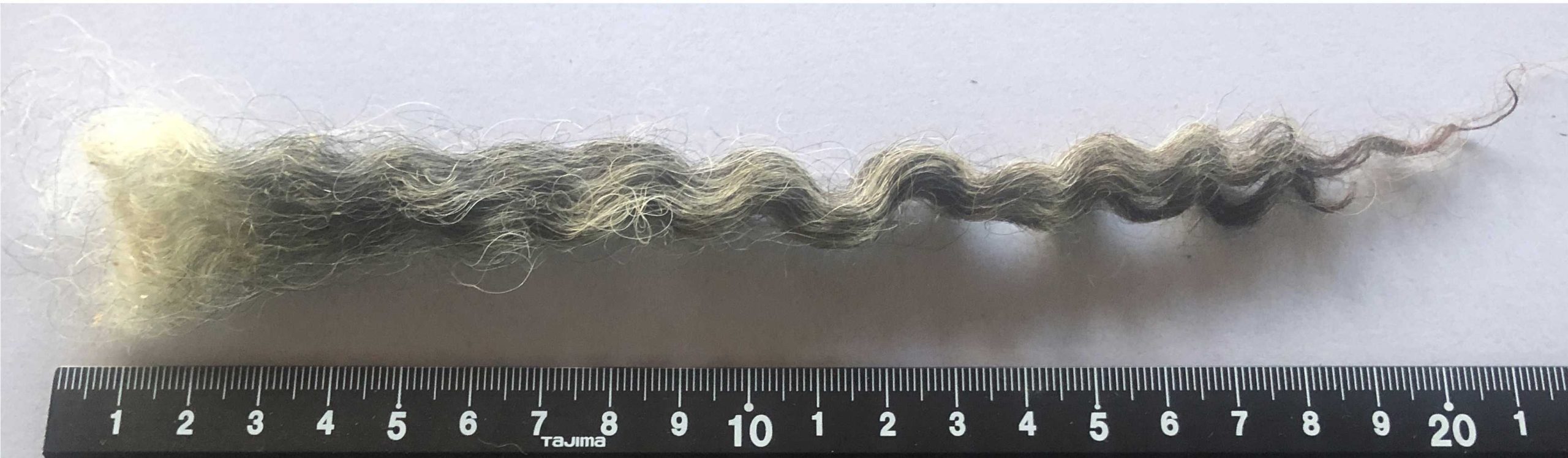 De vezellengte is zo’n 22 cm, er kunnen langere lokken tussen zitten.