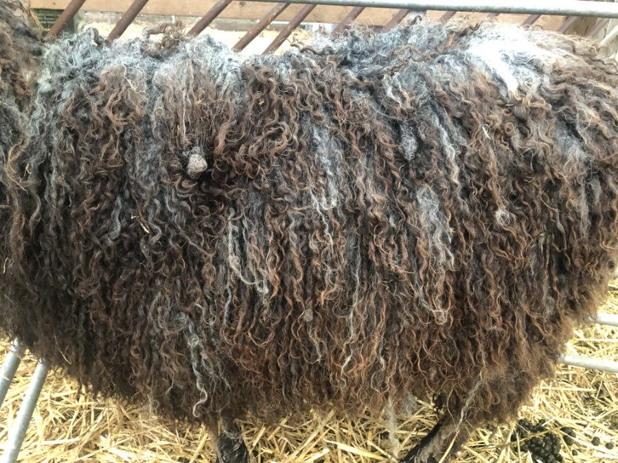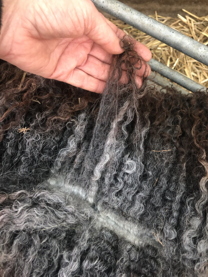 Deze jonge hamel heeft prachtige lange grijze lamswol met een lichte aanzet en een bruine punt. De kleur is bijzonder.