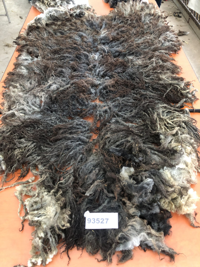 De vacht weegt 2,090 kilo en er zit een zakje bij met 220 gram buikwol apart, die is korter en wat vuiler, maar hebben we er voor de liefhebber als bonus bij gestopt.