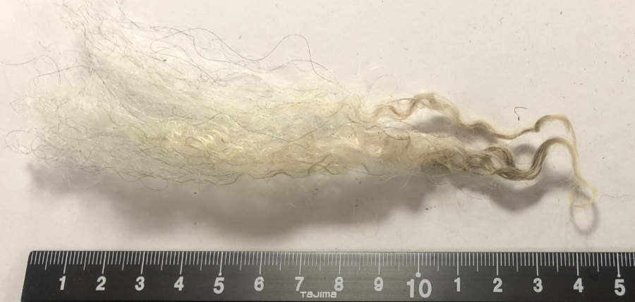 De vezellengte is zo’n 14 cm, er kunnen langere lokken tussen zitten.