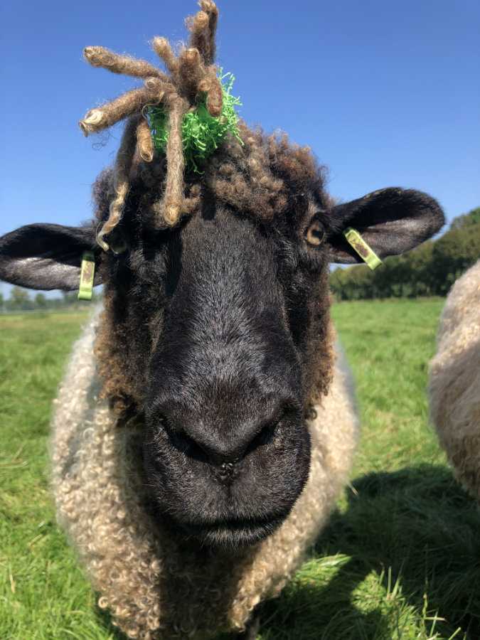 Vicky is een van onze “omaatjes”. Ze is een van de eerste longwool sherino’s die ik kocht en blijkt een van onze meest fotogenieke schapen, niks is te gek voor haar. Toen ze twee jaar geleden een drieling kreeg en het daar erg zwaar mee had besloten we dat zij en haar vriendin Vlo met pensioen mochten. Geen dekram meer, geen lammetjes meer. Ze grazen gezellig bij de ooilammeren, die we altijd eerst een jaartje over laten lopen om uit te groeien tot volwaardige schapen, voor ze moeder worden.
