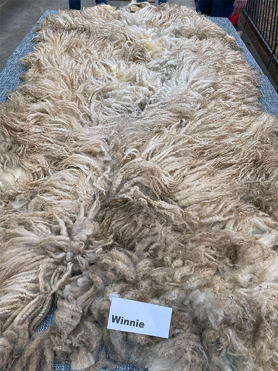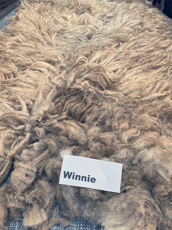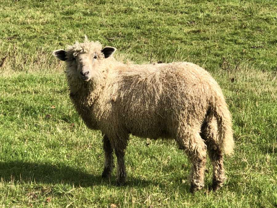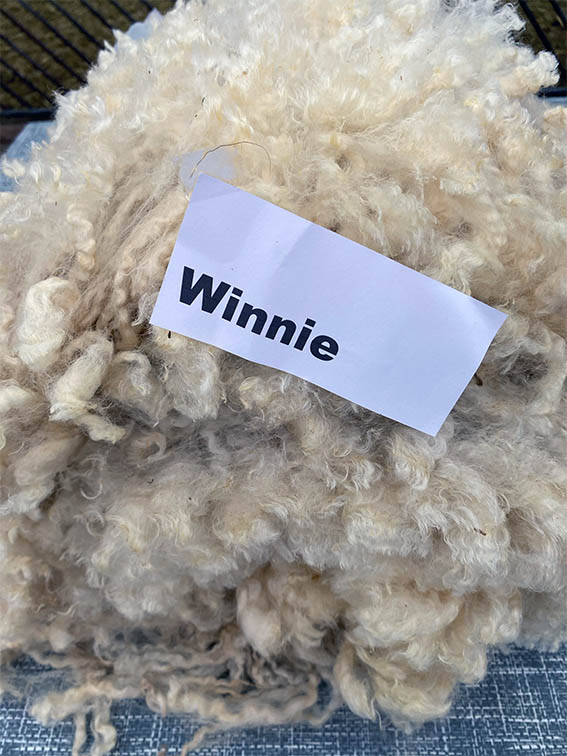 Winnie is een kruising. Haar moeder is Pepernoot, een “gewone” witte texelaar – rouge, haar vader is Bert, onze Wensleydale x Wallischer ram. Ze heeft prachtige lange zachte witte lokken die een fluwelige glans hebben.