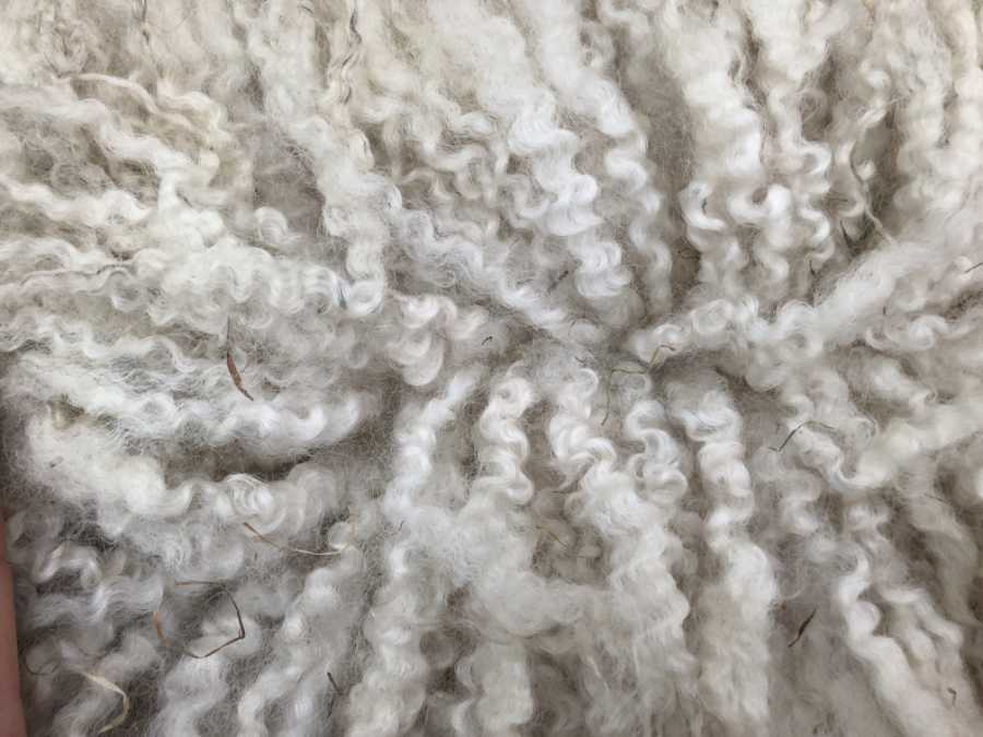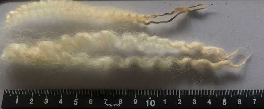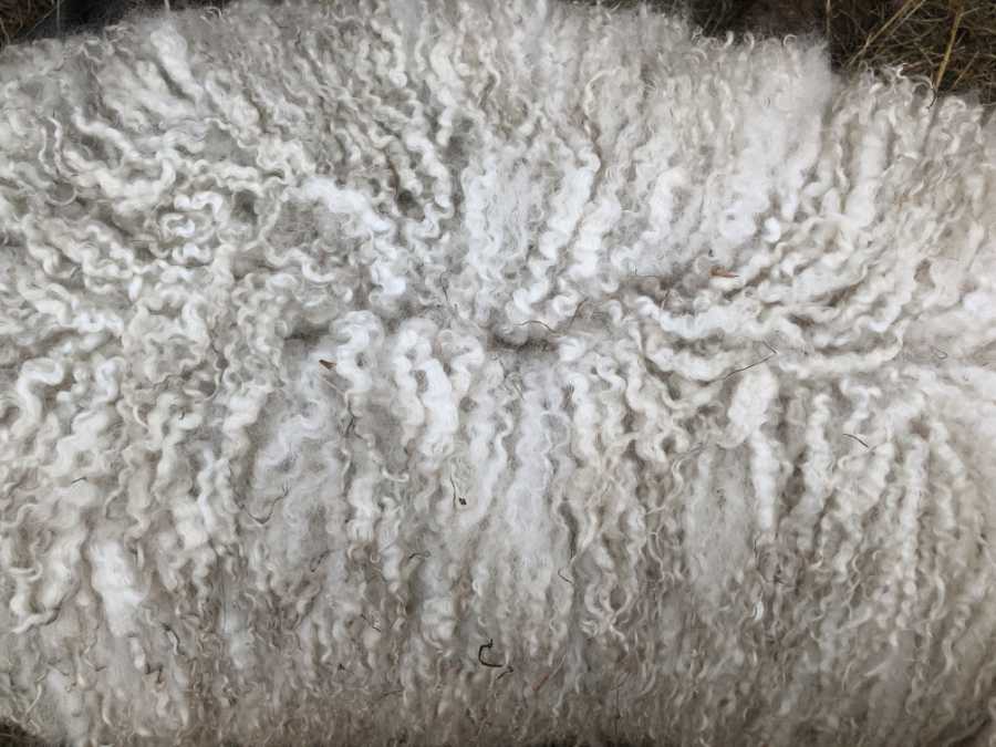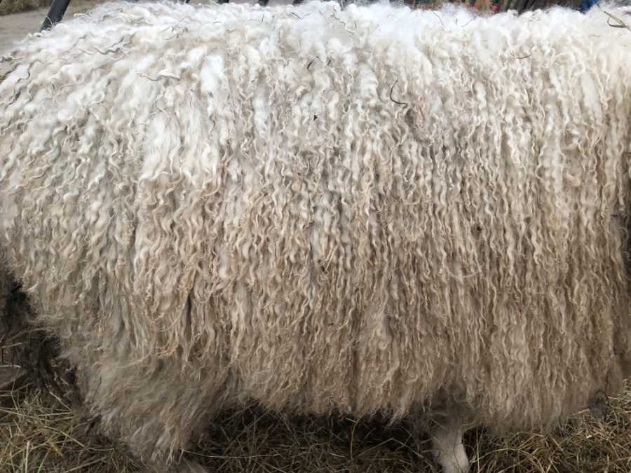 Deze fijne witte vacht is een hele mooie spinvacht. Als je de moeite neemt om de wol te kammen krijg je heel mooi glanzend kamgaren.
