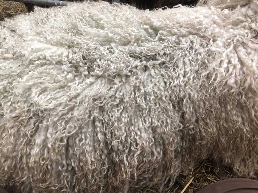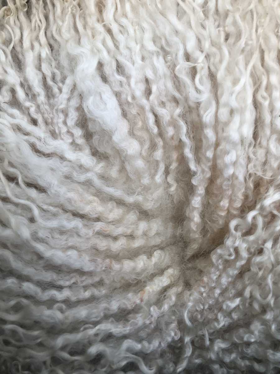 Deze fijne zachte zijdeachtige lamsvacht is bij uitstek geschikt om te spinnen. Als je de moeite neemt om de wol te kammen krijg je heel mooi glanzend kamgaren.