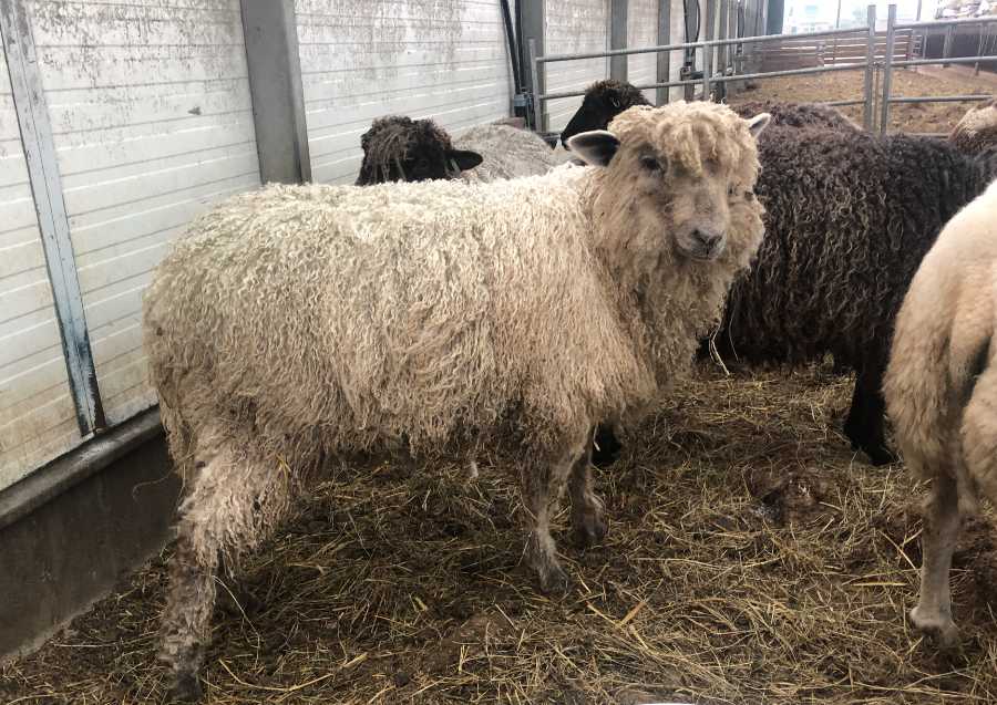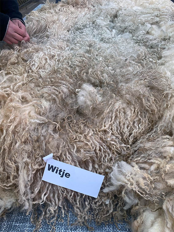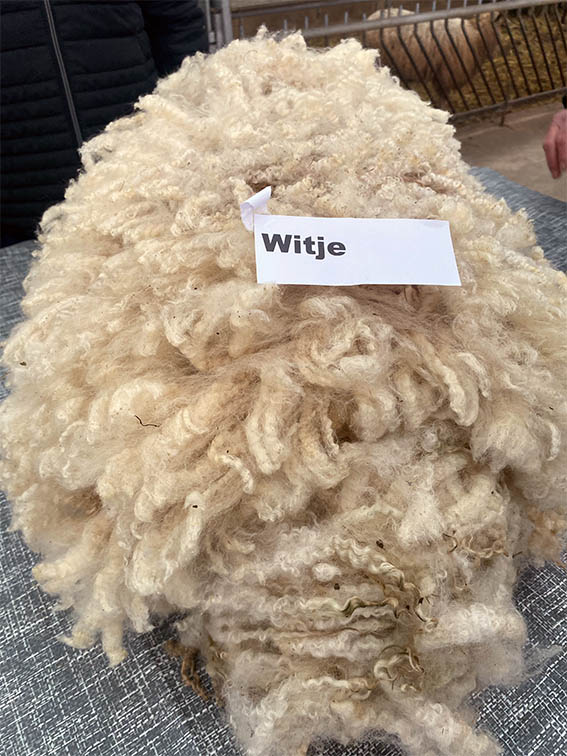 Witje is een hameltje van 2023. Omdat hij zo mooi was hebben we hem laten castreren, zo kan hij bij de ooien blijven lopen zonder gevaar dat hij ze dekt. Hopelijk vindt hij zo ook makkelijker een nieuw huisje. Witje’s moeder is Aagje (wit met wensleydaleachtige krullen) en zijn vader is Bert, onze kruising grijze Wensleydale met Bonte Wallischer. Dat laatste zie je duidelijk aan Witjes kop. Hij heeft Wallische manen en een leuke ronde neus.