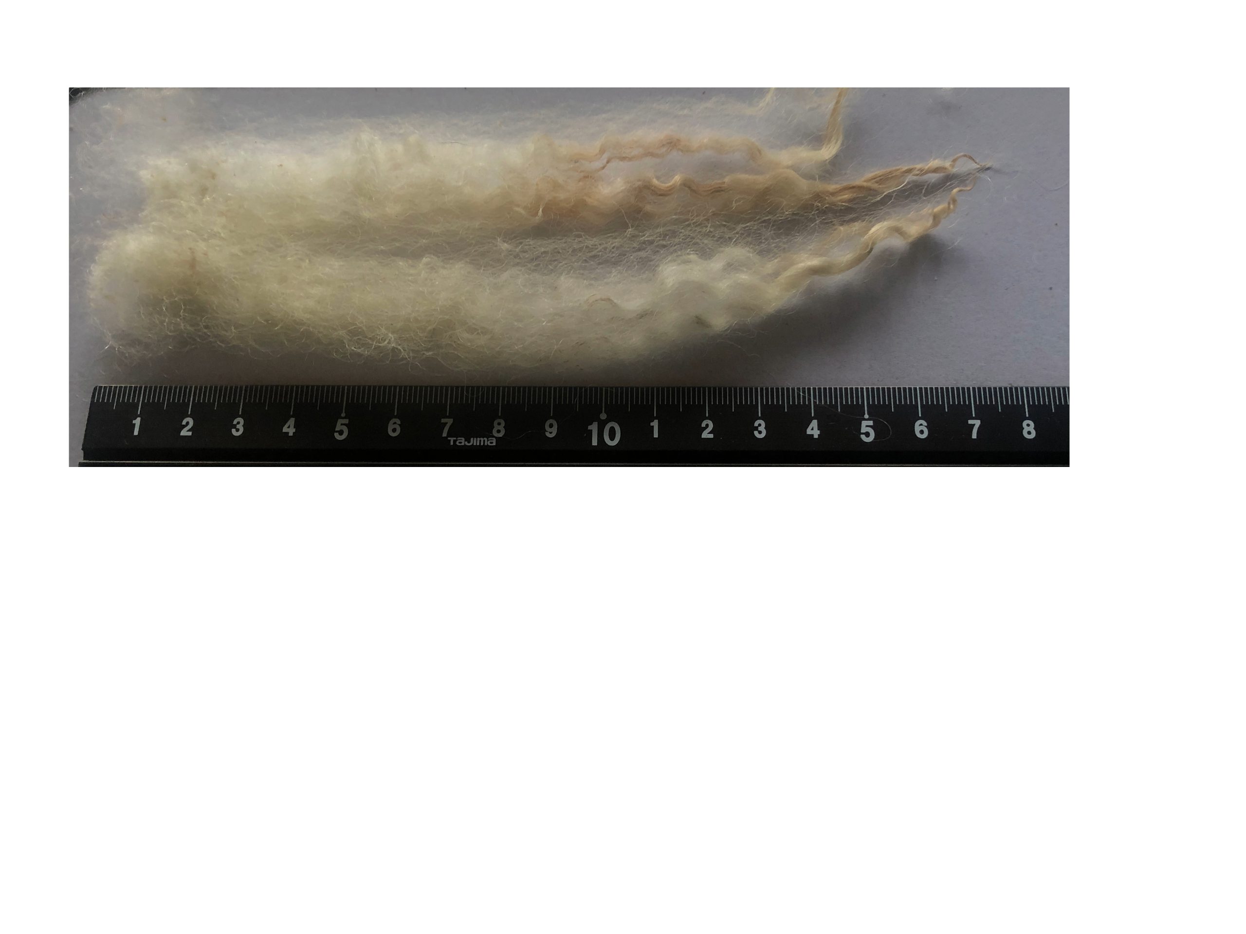 De vacht weegt 1,875 kilo en er zit een zakje bij met 150 gram buikwol apart, die is korter en wat vuiler, maar hebben we er voor de liefhebber als bonus bij gestopt.